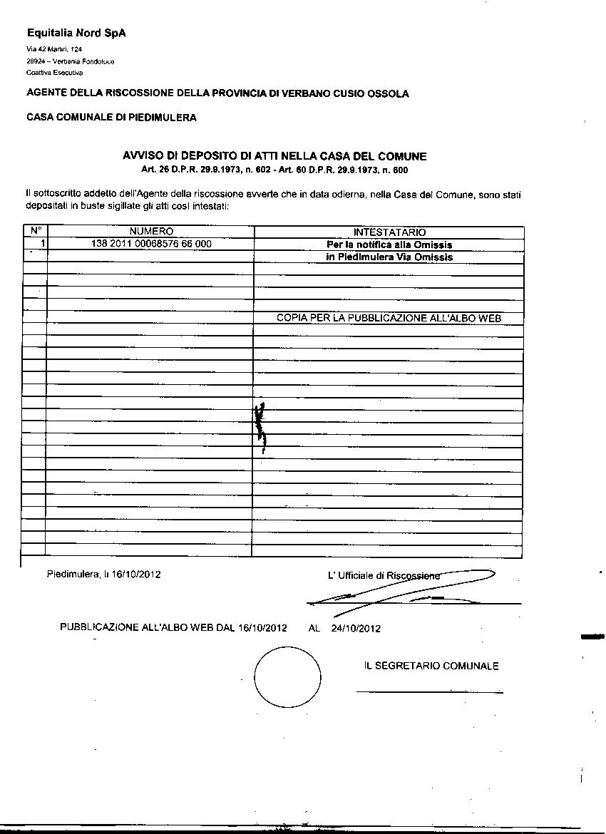 | Provenienza | Equitalia |