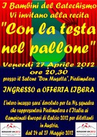 I Bambini del Catechismo Vi invitano alla recita "CON LA TESTA NEL PALLONE" presso il Salone "Don Musetta", Piedimulera.