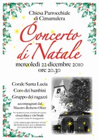 con la partecipazione della Corale S. LUCIA,CORO dei BAMBINI e il Gruppo dei RAGAZZI accompagnati dal Maestro ROBERTO OLZER........e per riscaldare la serata,al termine del concerto Cioccolata e Vin Brule' per tutti (ricavato Pro Missione in Ciad di Don Benoit) org. Comitato Pro Festeggiamenti Cimamulera